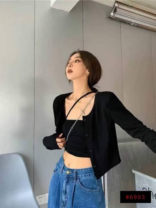 [月亮]:简约时尚短款39披肩纽扣开衫上衣