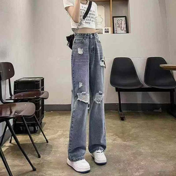 春夏季新款网红复古破洞牛仔直筒阔腿裤,独立包装带吊牌,码数27-31-32码(...