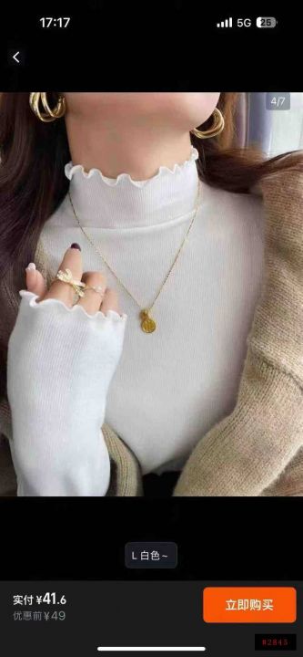 螺纹德绒半高领打底衫女长袖修身显瘦气质百搭上衣秋冬...