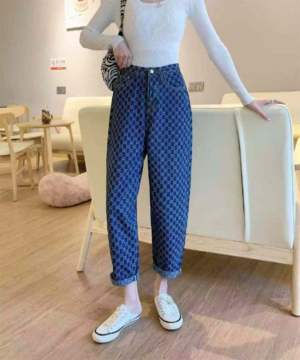 春秋新款洗水棉网红复古设计款牛仔老爹哈伦裤,独立包...