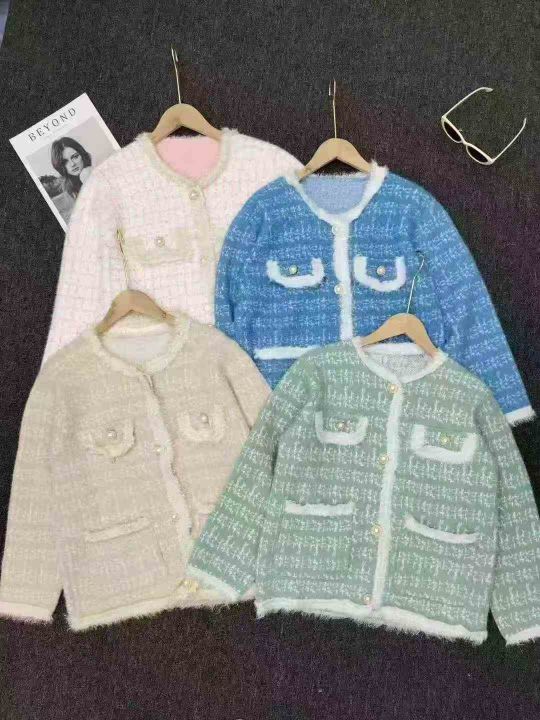 全清24.8元,2000件左右,春秋季新款宽松洋气小香风针织毛衣开衫仿水貂外套,小整款,独立包装,均码80-130斤可穿,分货➕1