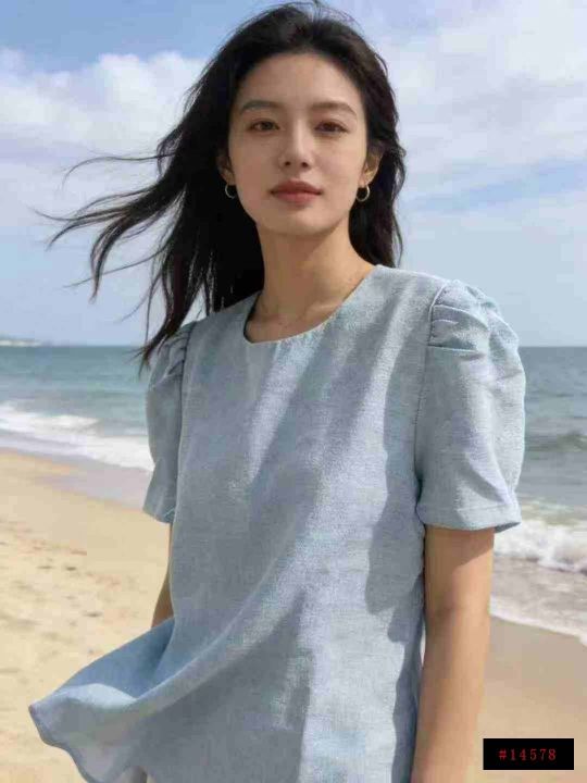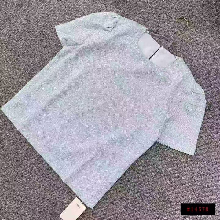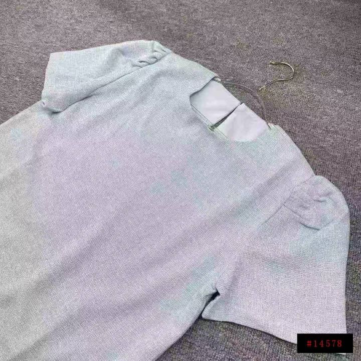 全清7.9 韩国夏季简约百搭圆领镂空格纹设计宽松泡泡袖纯色衬衫上衣女,码数s-xl,单款单色,共50件左右,不分货。@_@