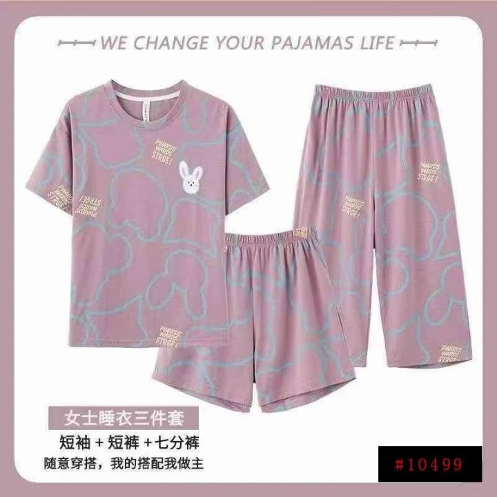 夏季女士薄款高级感三件套棉睡衣可外穿短袖短裤七分裤家居服,独立包装带吊牌,数量296套,尺码M-3XL@_@