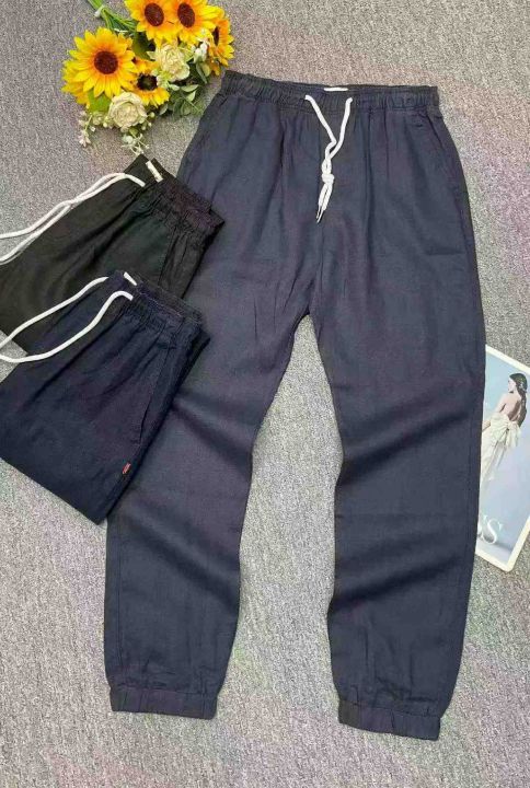 春秋新款男士品牌原单松紧腰束脚棉麻休闲裤,独立包装...