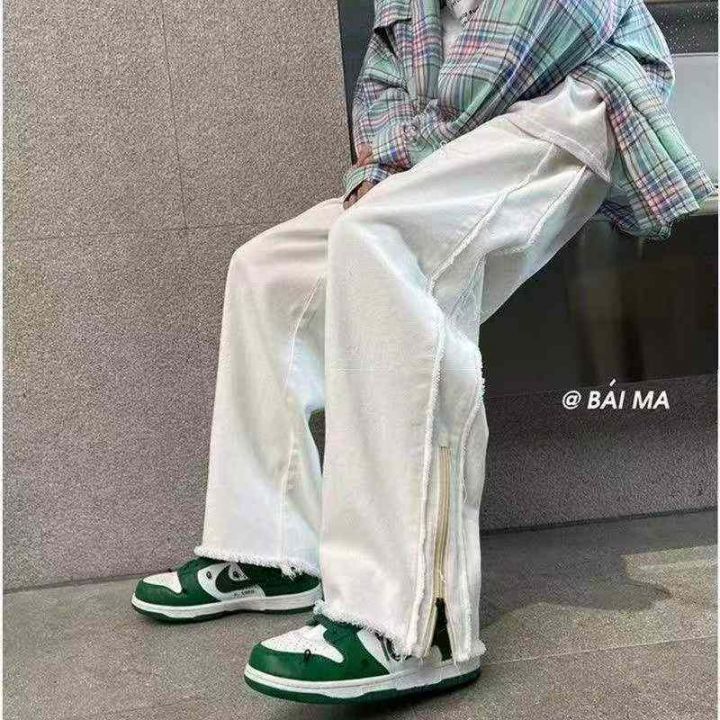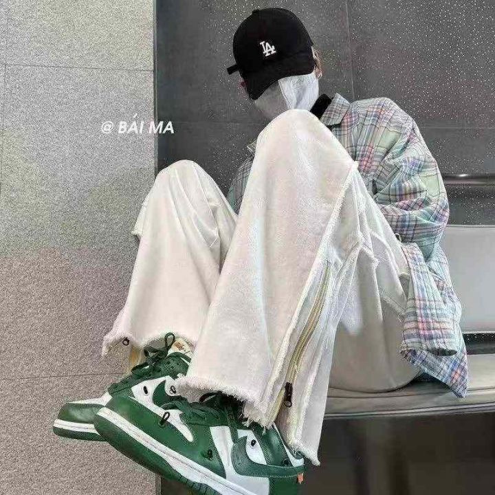 秋冬新款高街设计感休闲男潮牌痞帅宽松纯色拉链阔腿牛...