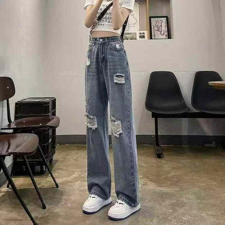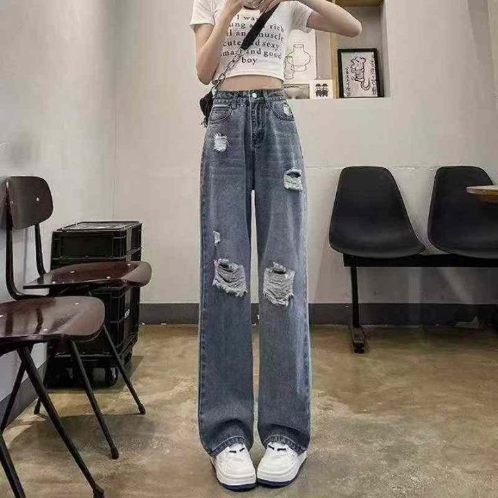 春夏季新款网红复古破洞牛仔直筒阔腿裤,独立包装带吊...