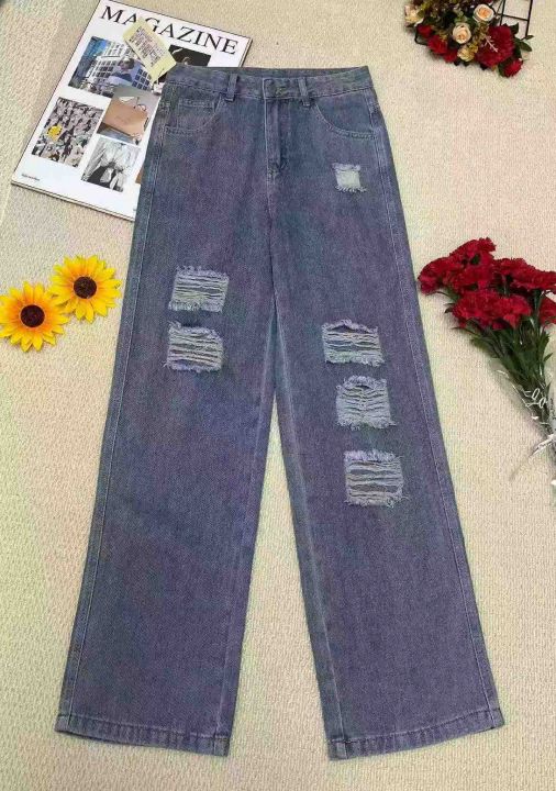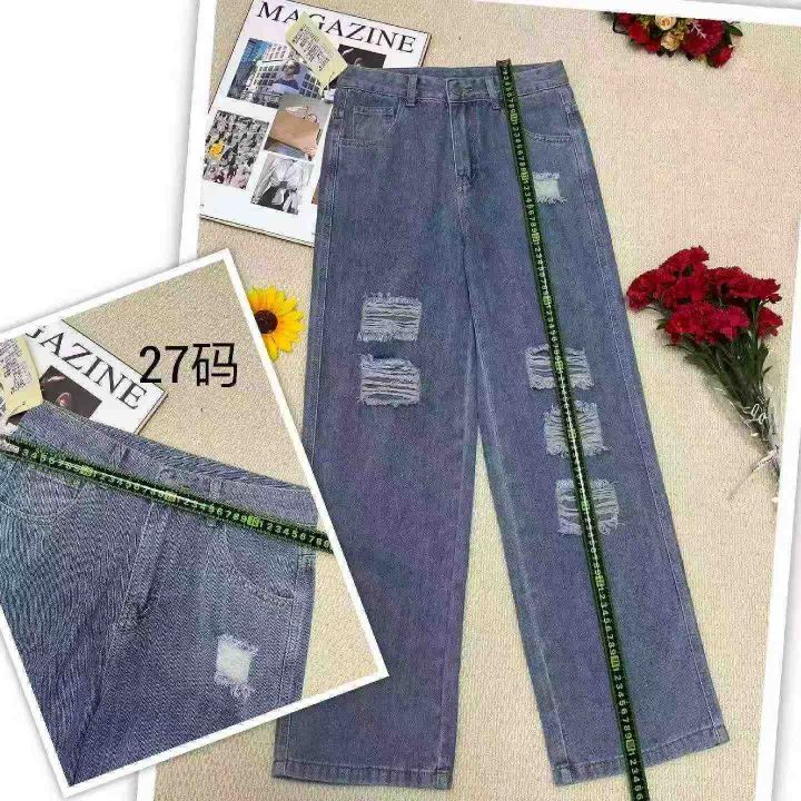 春夏季新款网红复古破洞牛仔直筒阔腿裤,独立包装带吊牌,码数27-31-32码(27码有80件)(31-32码有150件),全清8.9元超低价秒杀!分货加一!。 货号:24862