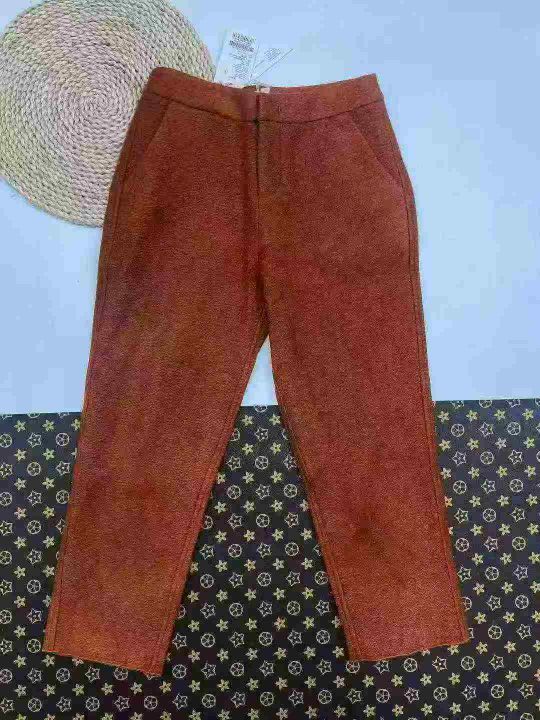 品牌女裤系列,#蔚雯,高端呢料秋冬款裤子,内里包边,两侧有口袋,数量300条左右,码数36-40码,单款棕色,独立包装吊牌,网路图供参考大概款式