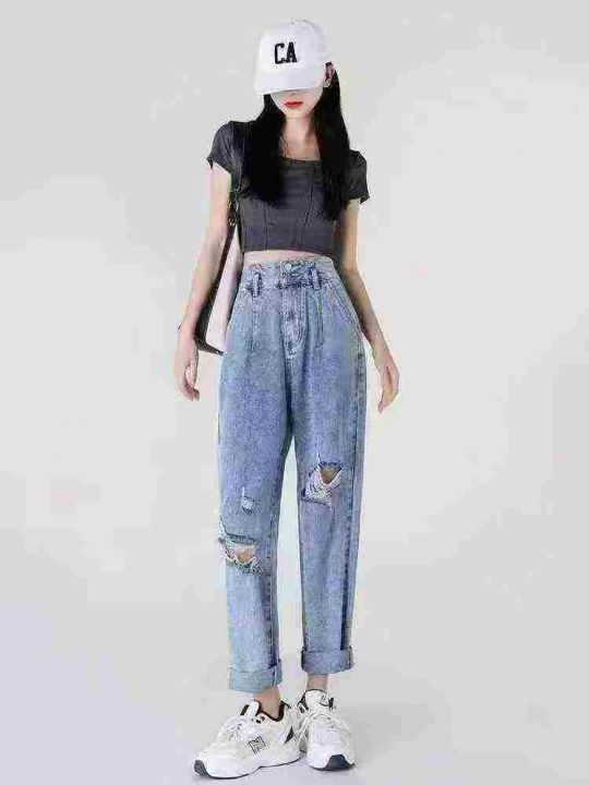 中山高品质牛仔☕️180条全清11.8元,码数 XS S M ,正品独立包装,破洞牛仔裤女直筒哈伦裤春夏款高腰显瘦宽松老爹裤