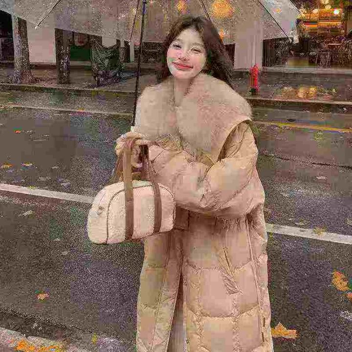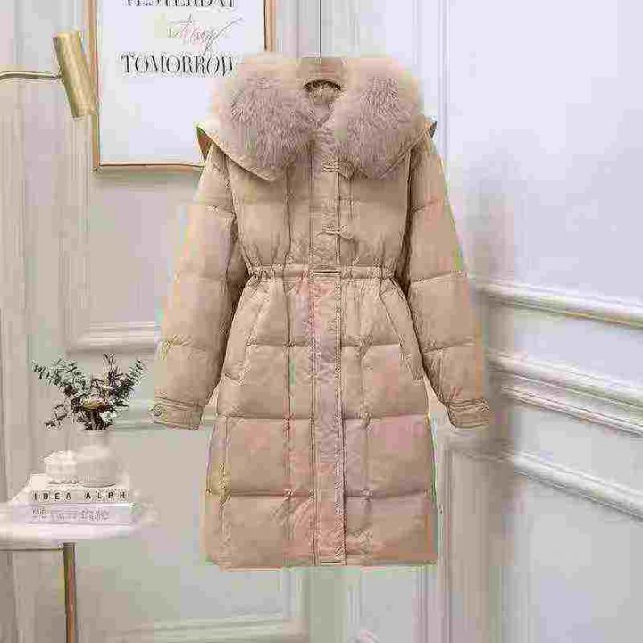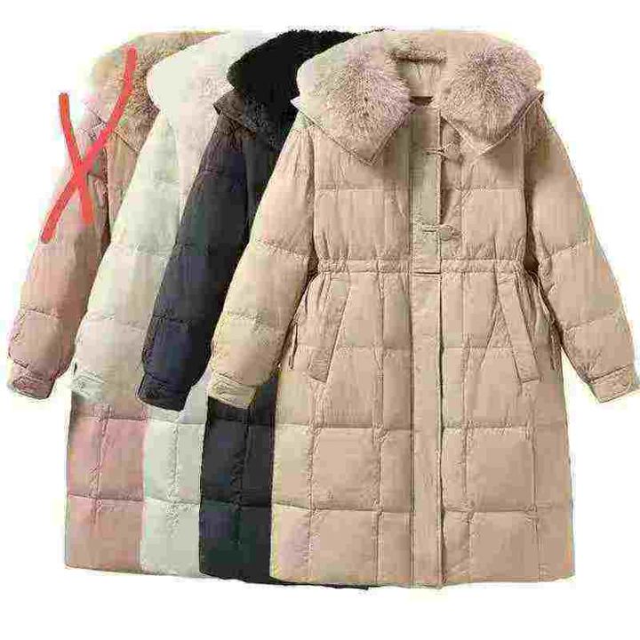 韩系高级感大毛领大长款棉服,数量495件,码数M-2XL,单款3色,黑色,白色,卡其色,独立包装吊牌,分货50件一份➕1元
