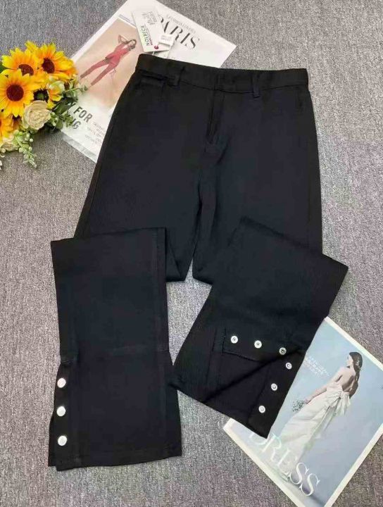 黑色宽松百搭排扣设计款洗水棉牛仔直筒烟管裤,独立包装带吊牌,码数S--2XL码,717件,全清8.9元超低价秒杀!分货加一!