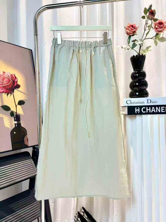 韩系新款复古高腰双口袋工装半身裙绑带松紧宽松A字裙休闲半身裙,高品质尼龙锦纶面料,独立包装