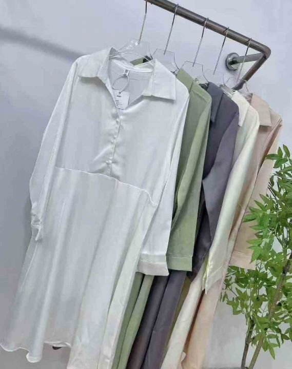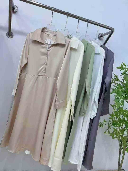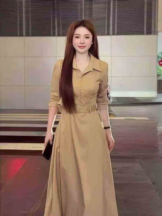 ☕️衬衫长款连衣裙170件全清13.8元,码数S到XXL,独立包装,单款5色,韩国chic春季法式简约翻领收腰显瘦纯色连衣裙长裙女