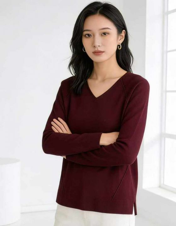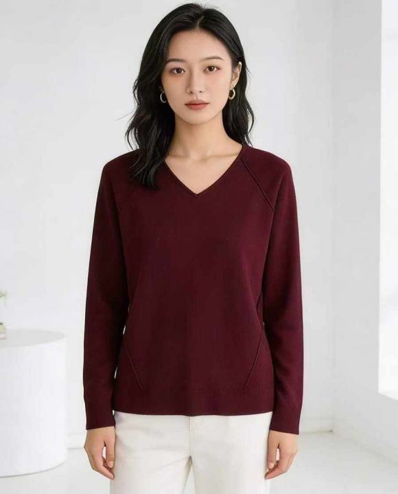 秋冬新款法式复古开叉设计款宽松V领套头毛衣,独立包...