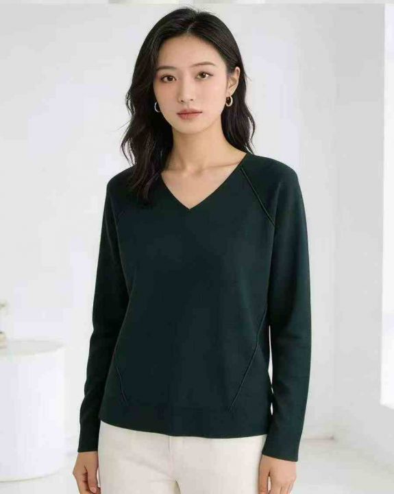 秋冬新款法式复古开叉设计款宽松V领套头毛衣,独立包...