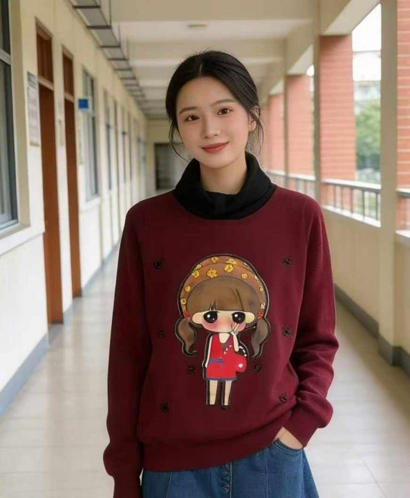 秋冬新款宽松复古卡通设计款加厚套头毛衣,独立包装,...