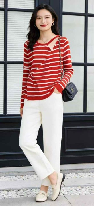 秋冬新款撞色条纹宽松设计款韩系套头羊毛衫,独立包装...