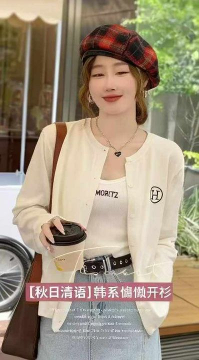 春秋新款韩系宽松刺绣小标糯米包芯纱毛衣开衫,独立包...
