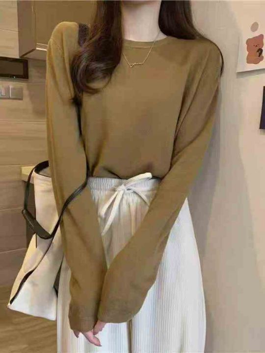 秋冬新款净版简约百搭多巴胺圆领包芯纱套头毛衣,独立...