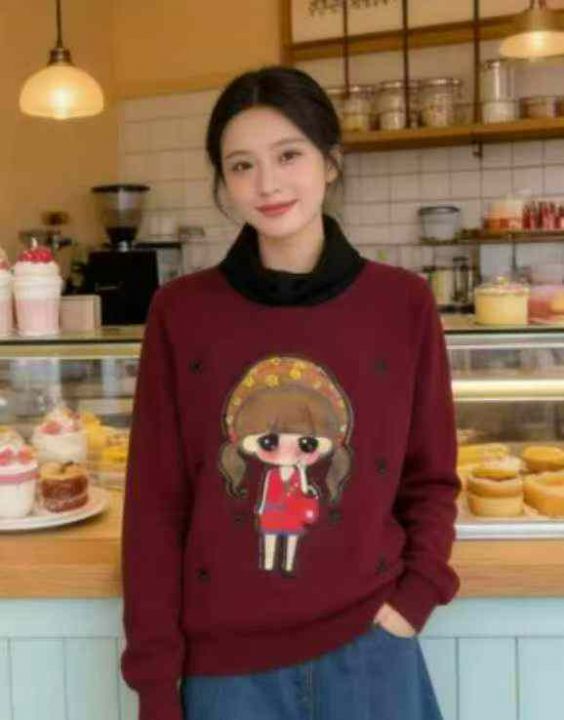 秋冬新款宽松复古卡通设计款加厚套头毛衣,独立包装,均码年龄软糯厚实,14...