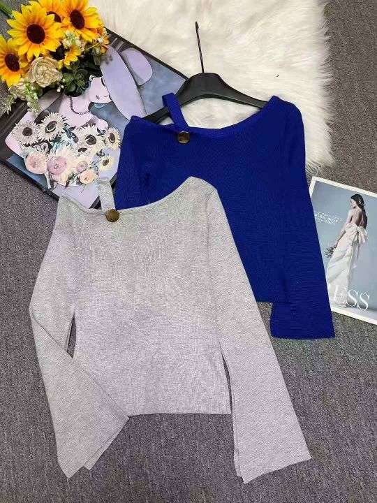 秋冬新款设计款单肩不对称时尚喇叭袖开叉针织套头毛衣,独立包装,均码面料柔软舒适弹力大,100件左右,全清5.9元超低价秒杀!