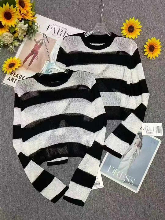 捡漏款,早秋新款靓妹短款宽松撞色黑白条纹针织长袖小衫,有垫肩,均码面料柔软舒适透气,50件,全清4.9元超低价秒杀!