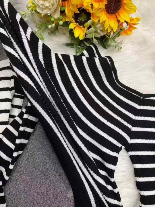 秋季新品法式条纹辣妹露肩一字肩高级感套头毛衣,独立...