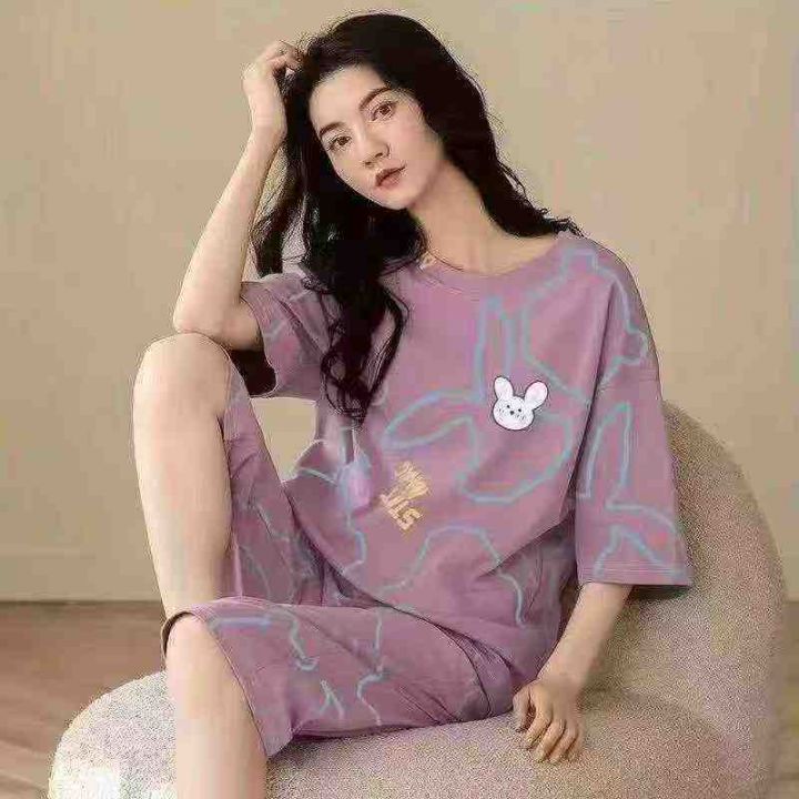 夏季女士薄款高级感三件套棉睡衣可外穿短袖短裤七分裤家居服,独立包装带吊牌,数量296套,尺码M-3XL