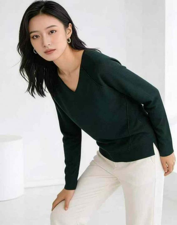 秋冬新款法式复古开叉设计款宽松V领套头毛衣,独立包...
