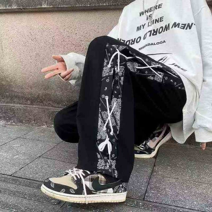 6.8元,男士潮流拼色百搭阔腿休闲裤,脚口抽绳设计,...