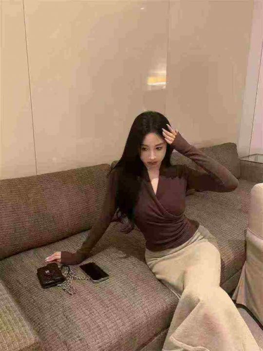 不规则v领针织衫女秋冬设计感小众毛衣开叉修身上衣潮,独立包装,550件,清...
