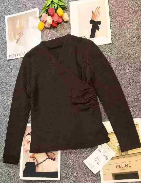 品牌辣妹小众设计感别致交叉V领收腰上衣,[爱心]340件左右,均码穿80-130斤,万佳档口货,原包装️瑕疵,[666]实体店品质,分货加一