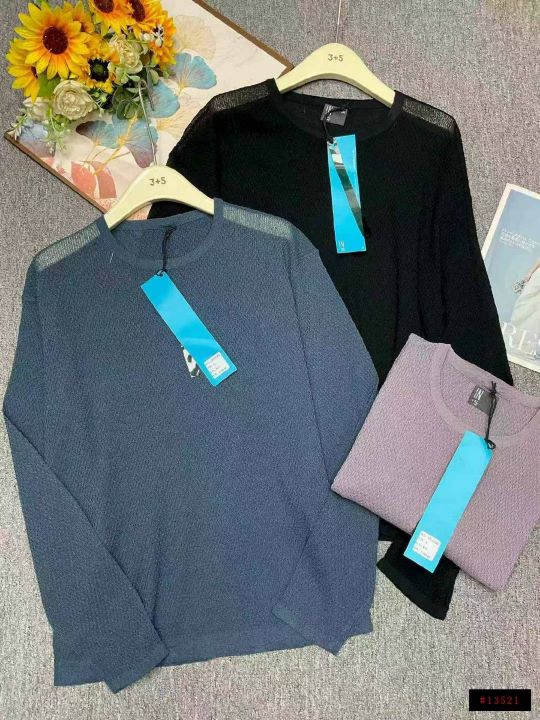 品牌原单男士宽松净版简约冰丝针织长袖,独立包装带吊...