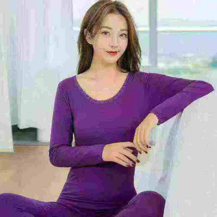 莫代尔棉女士秋衣秋裤薄款紧身纯色打底冬季美体修身保暖内衣套装,数量1200套,均码,独立包装,全清7.9元,分货8.5元