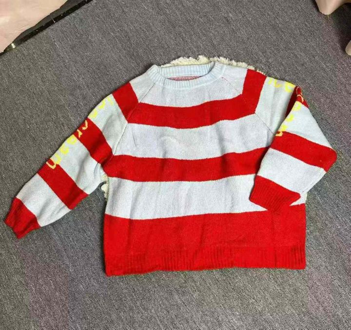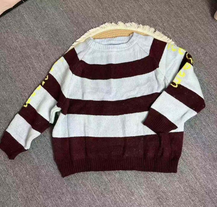 秋冬新款撞色字母条纹圆领针织衫女宽松慵懒风毛衣,独立包装,600件左右,清8.8,分➕1