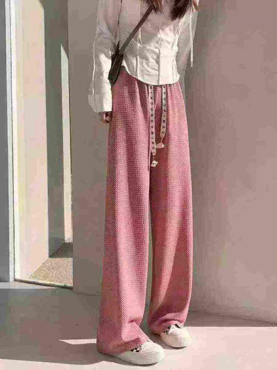 3360条泡芙裤女冰丝薄款宽松阔腿裤垂感棋盘格裤子,3...