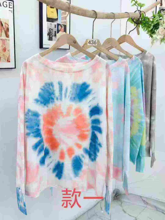 外贸扎染薄款女装卫衣,清3.99单款多色,纯棉面料(...