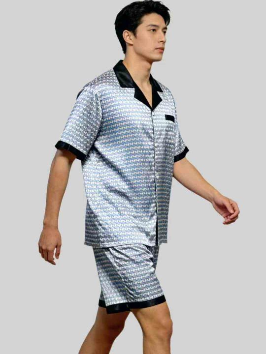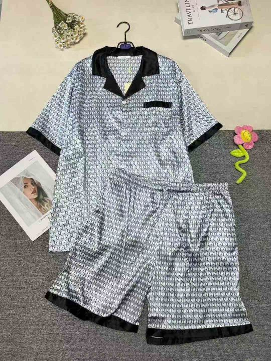 外贸男士仿真丝绸缎冰丝薄款短袖短裤家居服套装,小整...