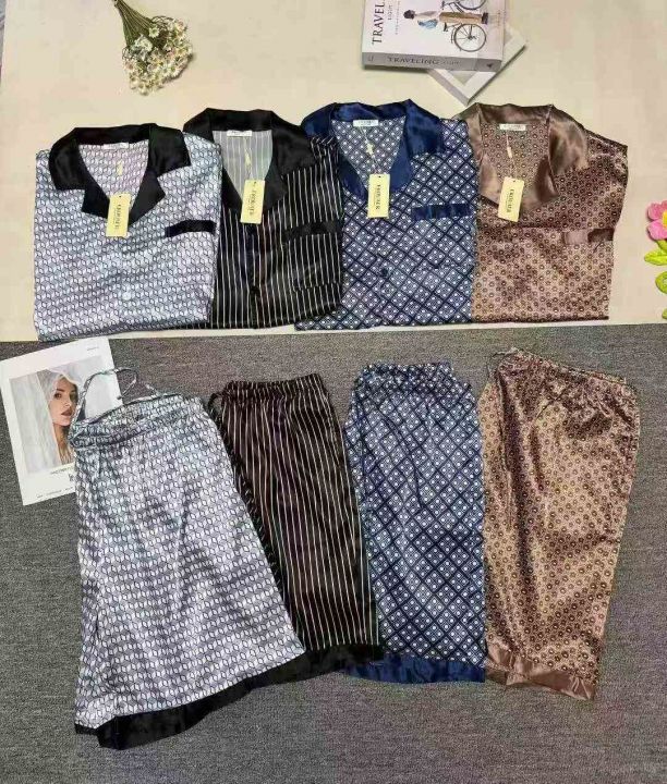 外贸男士仿真丝绸缎冰丝薄款短袖短裤家居服套装,小整款款,品质好,可抽真空拉链独立包装带吊牌,数量320套左右,码数s-2xl,特价清16.8
