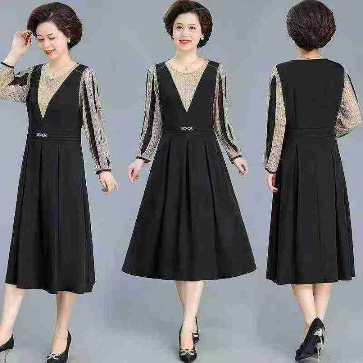 妈妈装秋季长袖连衣裙薄款中老年女雪纺洋气上衣气质阔太太装裙子,数量175...