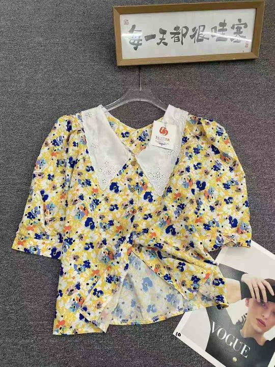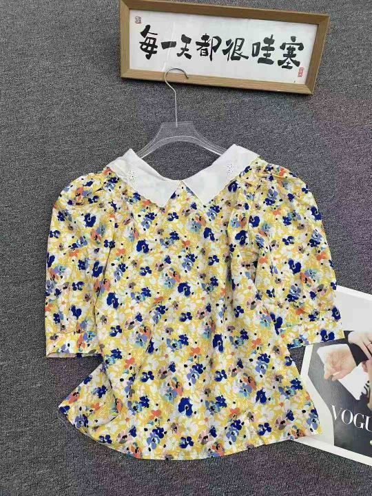 设计感小众碎花衬衫70件7.9,复古花边设计,泡泡袖,...