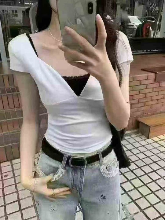 22000多件美式瑜伽辣妹风性感深V领时尚百搭短袖t恤,...