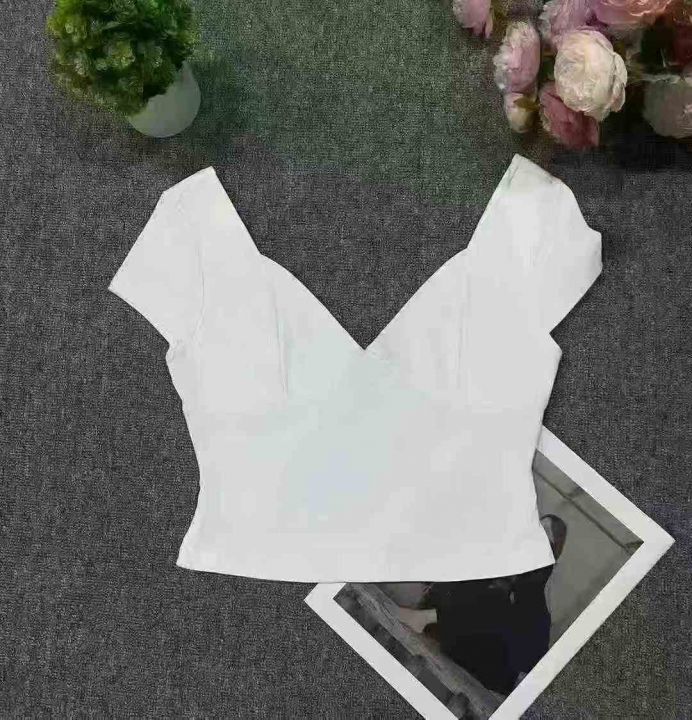 22000多件美式瑜伽辣妹风性感深V领时尚百搭短袖t恤,尺码:S~4XL,实体店品质,面料软糯,四面高弹,做工精良,全清价3.8元,分货加1元。