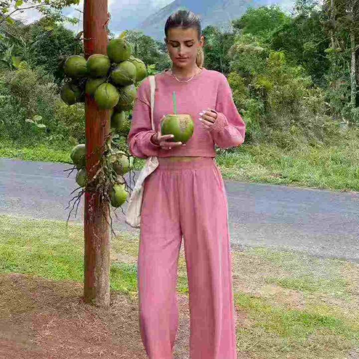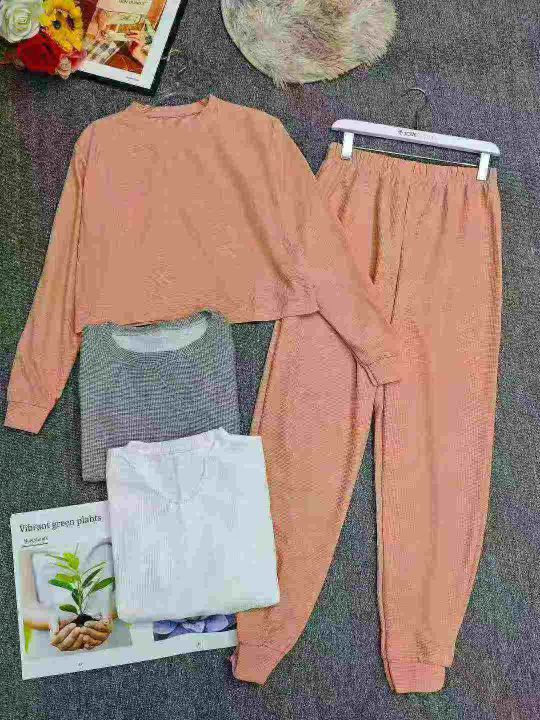 工厂回收2350套外贸跨境热卖辣妹华夫格运动休闲女士卫衣套装,码数S-2XL。版型很好,面料有有质感有弹性,有独立包装。分货➕1