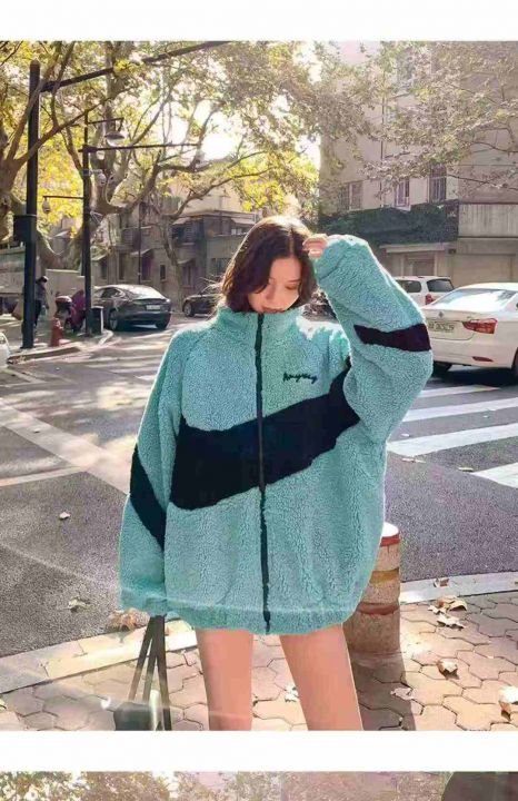 90件左右湖蓝色羊羔绒外套女秋冬网红靓妹款盐系复古港味慵懒休闲加绒加厚羊...