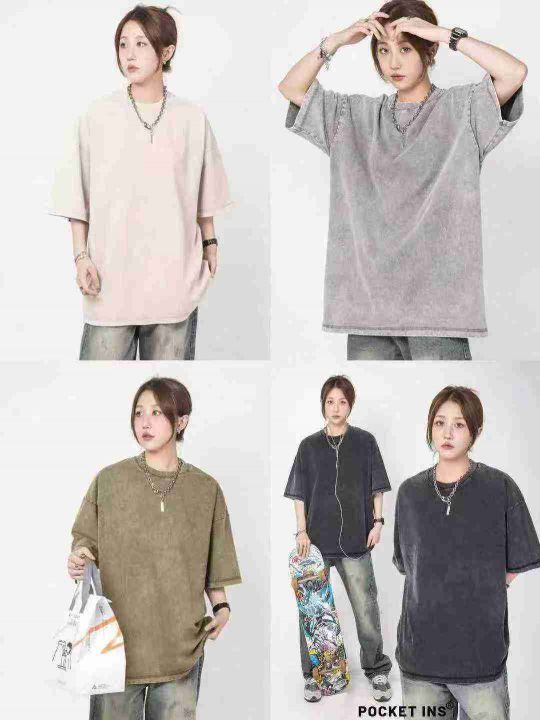 ☕️男女同款大版洗旧工艺纯色短袖T恤,319件全清6.8元,分货7.8元,码数M-...