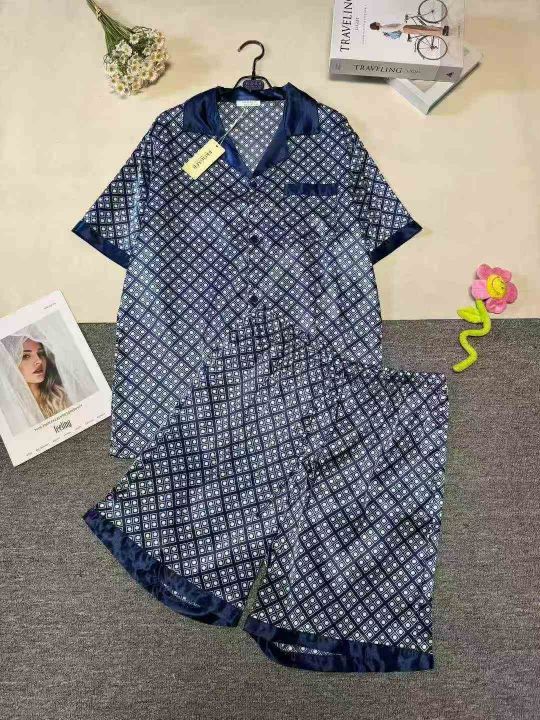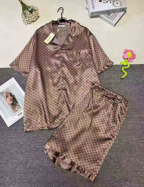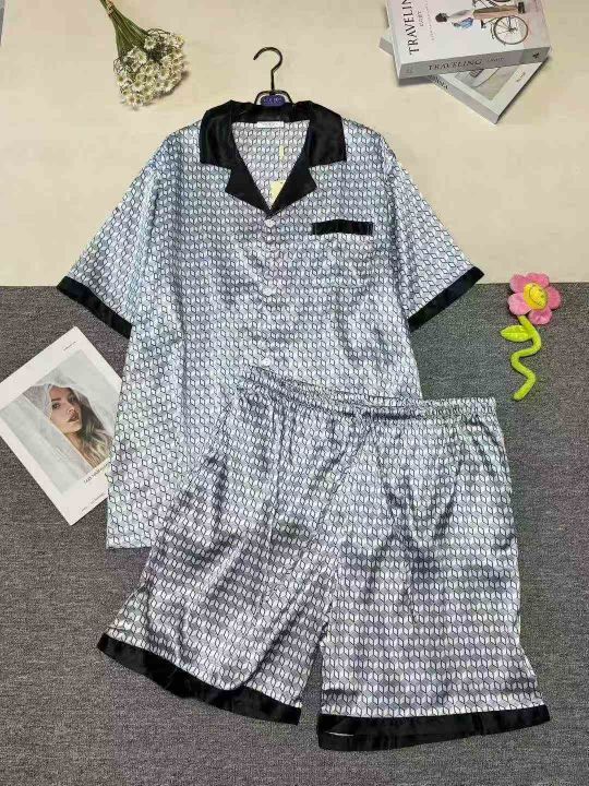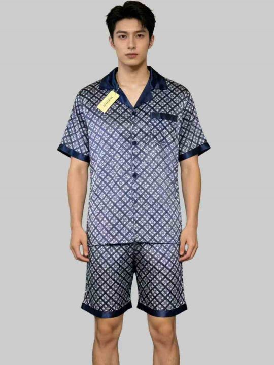 外贸男士仿真丝绸缎冰丝薄款短袖短裤家居服套装,小整...