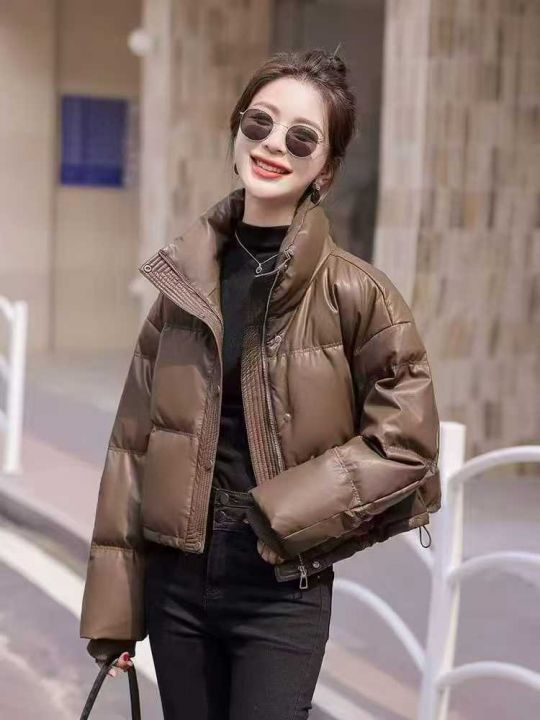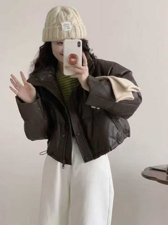 8000件免洗pu皮羽绒棉服冬季2025年新款宽松加厚防风立领短款外套[烟花][烟花][烟花]