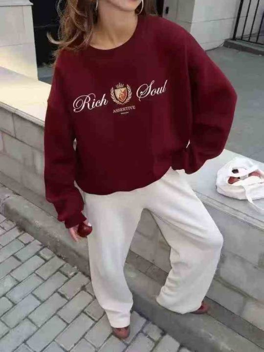 欧美风卫衣女秋冬婴儿绒加厚款宽松百搭套头(后领包边...