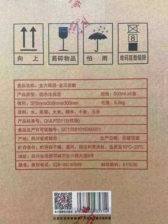 100大几十元一箱金六福酒,23年,50.8度和40.8度,兼...